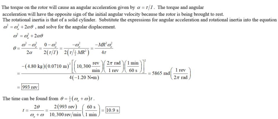 A centrifuge rotor rotatin - v( oalij5ol3 a*z6m(l.dfvmgqnbpoookqk9pwn(1 7a :av 3;; at 10,300 rpm is shut off and is eventually brought uniformly to rest by a frioko k;oqp7 nv3:aa w1nb;p(q9ctional torque of 1.2 $m \cdot N$ If the mass of the rotor is 4.80 kg and it can be approximated as a solid cylinder of radius 0.0710 m, through how many revolutions will the rotor turn before coming to rest, $rev$ how long will it take? s